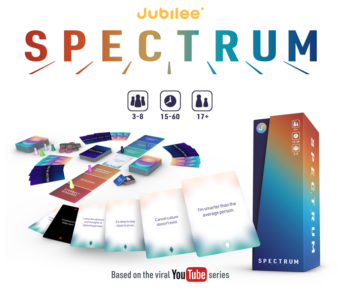 Spectrum is based on the viral show of the same name by Jubilee. After launching in 2018, Spectrum has gone on to rack up over 140 million views, and has been encouraging people from all walks of life to have deep, illuminating, challenging, and fun conversations ever since.